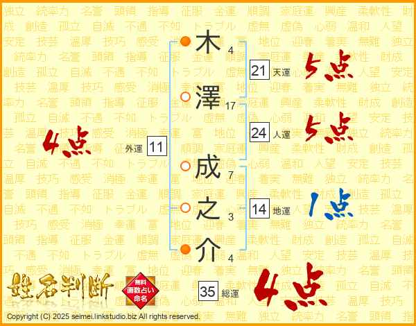 木澤成之介さんの天運は21画の5点!