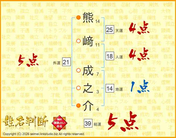 熊(14画)﨑(11画) 成(7画)之(3画)介(4画)