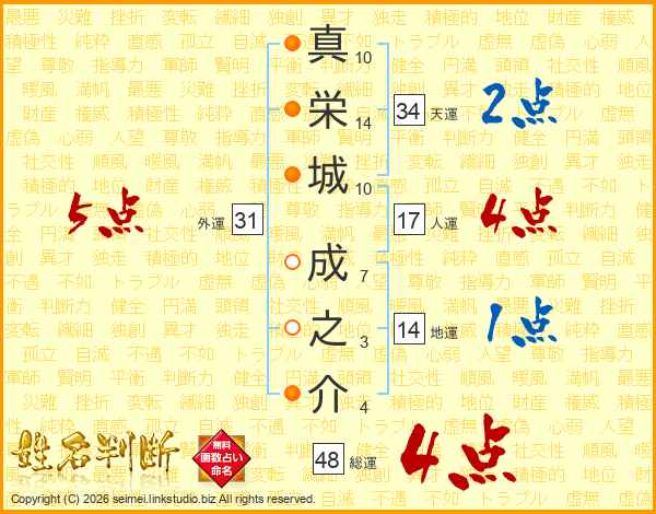 真栄城成之介さんの総運は48画の4点!