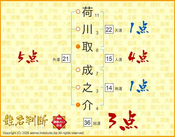 荷(11画)川(3画)取(8画) 成(7画)之(3画)介(4画)
