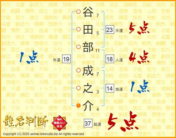 谷(7画)田(5画)部(11画) 成(7画)之(3画)介(4画)
