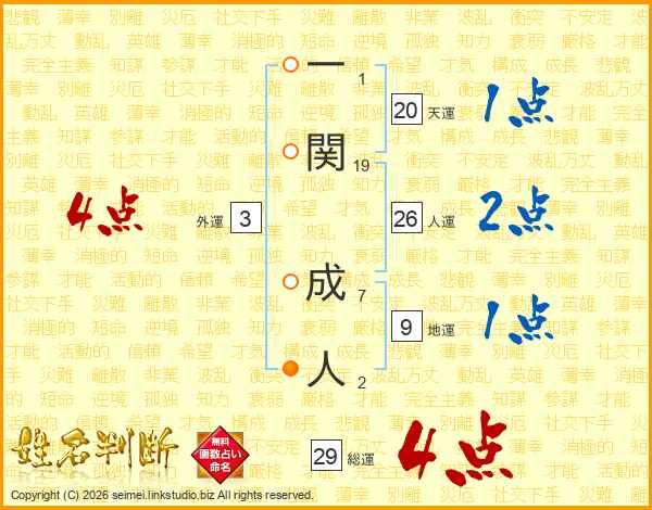 一関成人さんの人運は26画の2点!