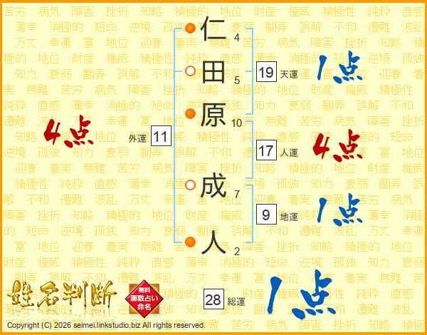 仁(4画)田(5画)原(10画) 成(7画)人(2画)