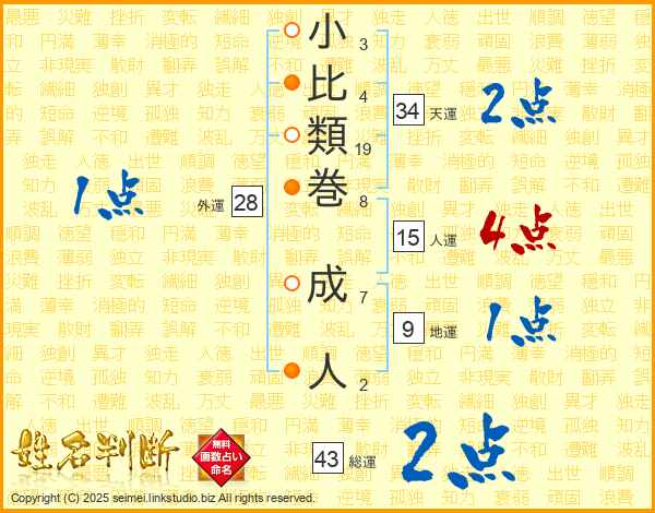 小(3画)比(4画)類(19画)巻(8画) 成(7画)人(2画)