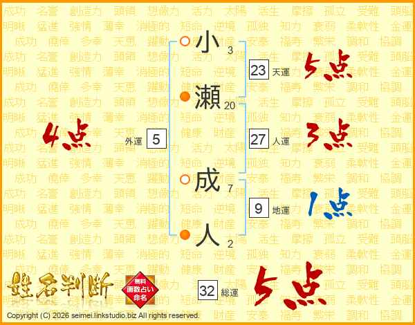 小瀬成人さんの総運は32画の5点!