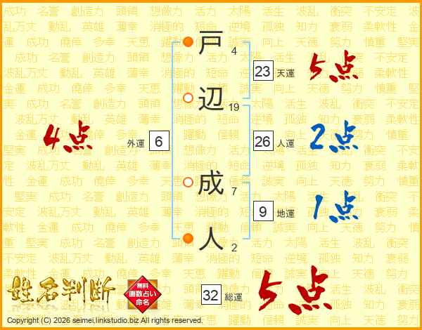 戸辺成人さんの総運は32画の5点!