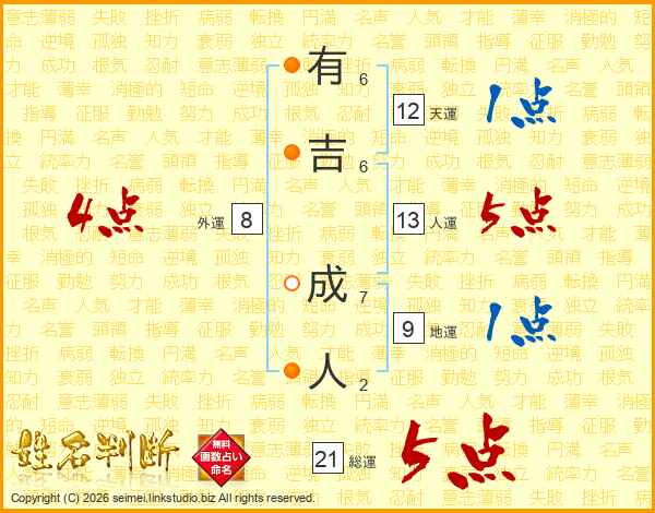 有吉成人さんの総運は21画の5点!