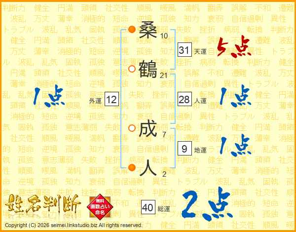桑鶴成人さんの天運は31画の5点!