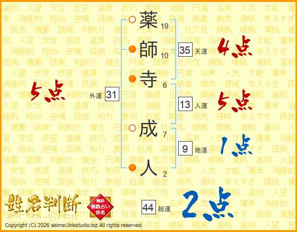 薬師寺成人さんの総運は44画の2点!