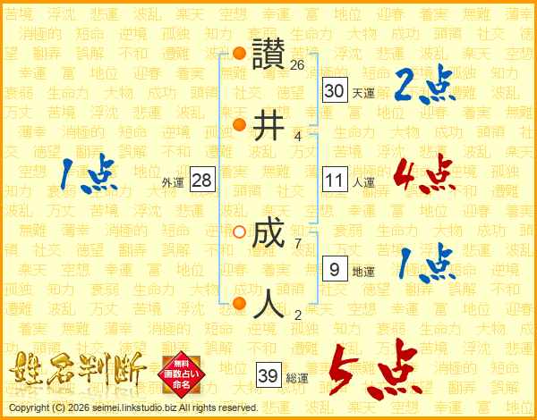 讃井成人さんの総運は39画の5点!