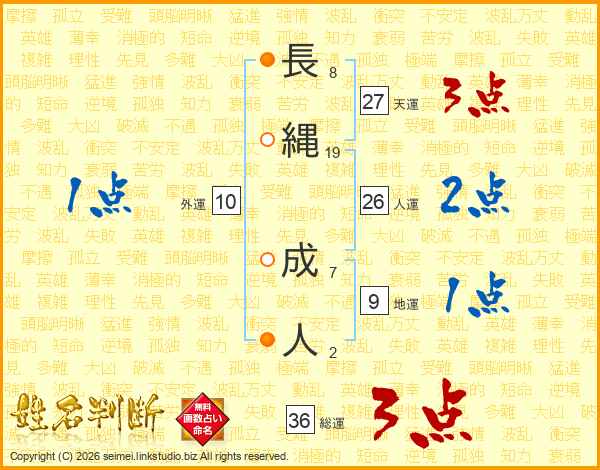 長縄成人さんの人運は26画の2点!