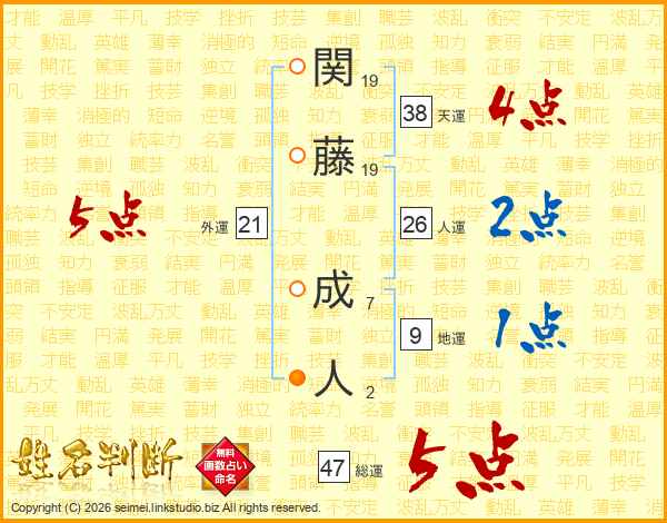 関藤成人さんの総運は47画の5点!