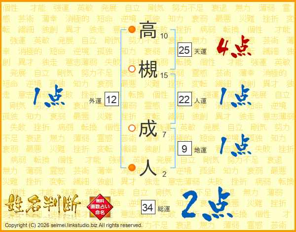 高槻成人さんの天運は25画の4点!