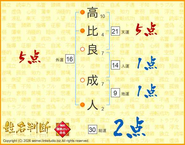 高(10画)比(4画)良(7画) 成(7画)人(2画)