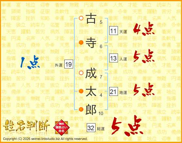 古寺成太郎さんの総運は32画の5点!