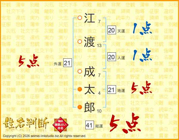 江渡成太郎さんの総運は41画の5点!