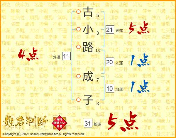 古(5画)小(3画)路(13画) 成(7画)子(3画)