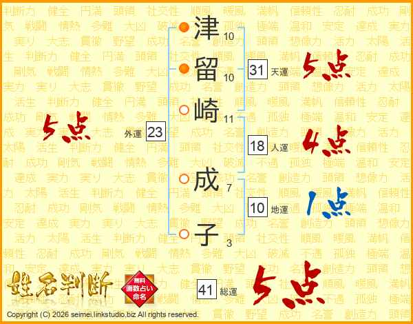 津(10画)留(10画)崎(11画) 成(7画)子(3画)