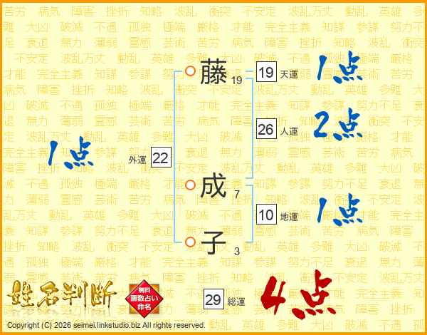 藤成子さんの人運は26画の2点!