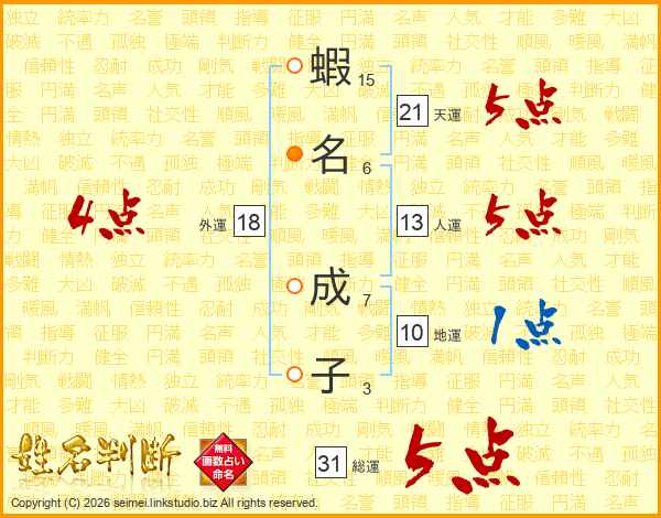 蝦名成子さんの天運は21画の5点!