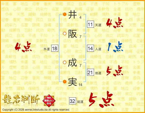 井阪成実さんの総運は32画の5点!