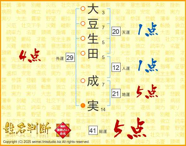 大(3画)豆(7画)生(5画)田(5画) 成(7画)実(14画)