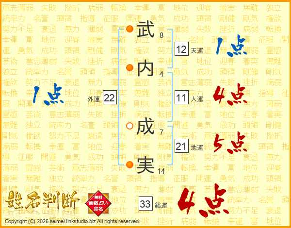 武(8画)内(4画) 成(7画)実(14画)