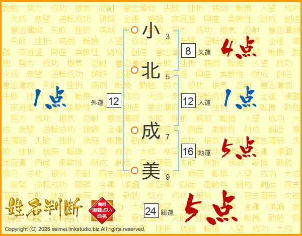 小北成美さんの総運は24画の5点!