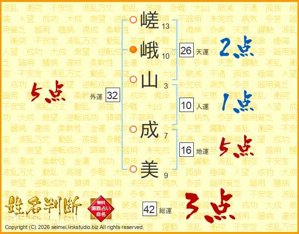 嵯峨山成美さんの天運は26画の2点!