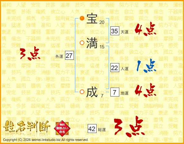 宝(20画)満(15画) 成(7画)