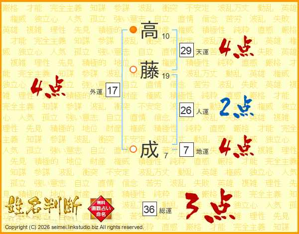高(10画)藤(19画) 成(7画)