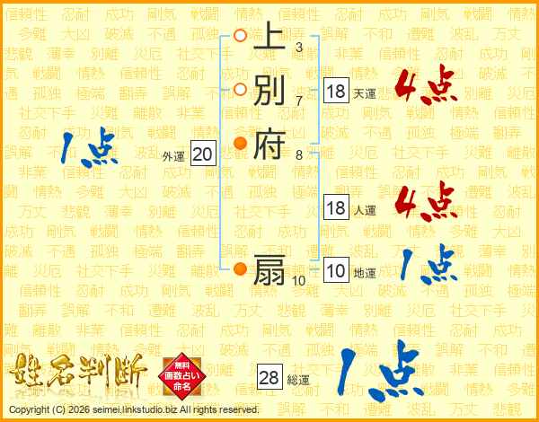 上別府扇さんの総運は28画の1点!