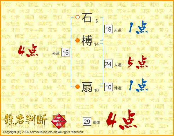 石榑扇さんの総運は29画の4点!
