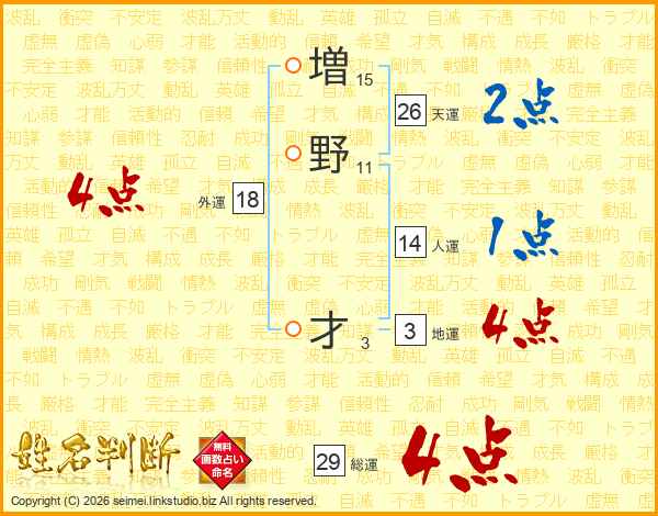 増野才さんの天運は26画の2点!