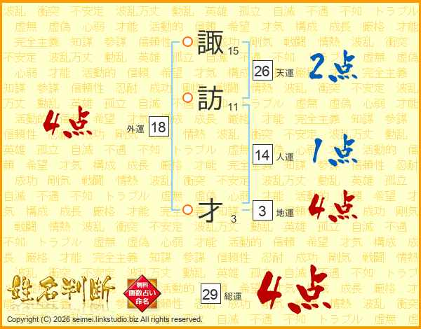 諏訪才さんの総運は29画の4点!