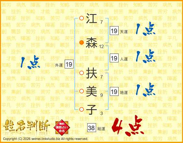江森扶美子さんの総運は38画の4点!