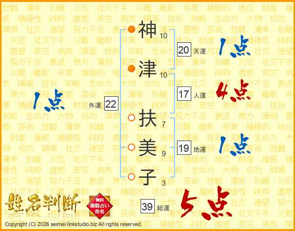 神津扶美子さんの総運は39画の5点!