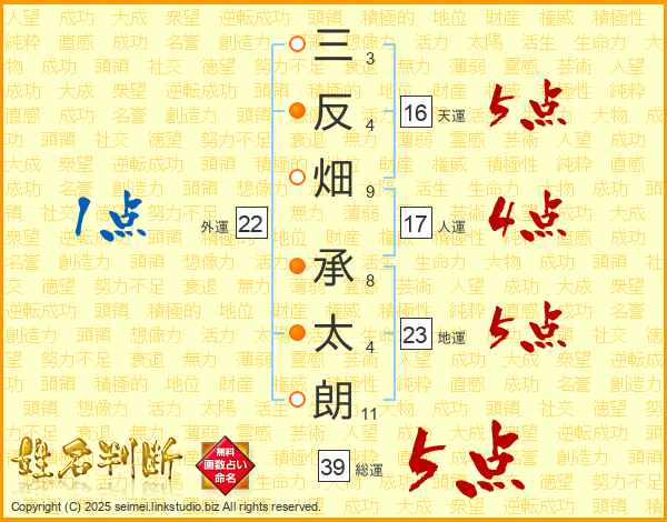 三(3画)反(4画)畑(9画) 承(8画)太(4画)朗(11画)