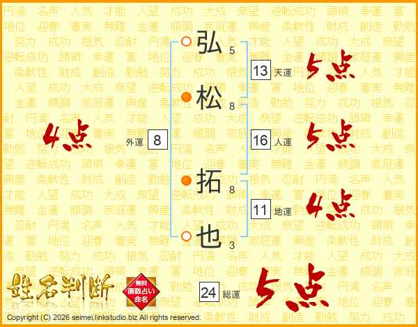 弘松拓也さんの総運は24画の5点!