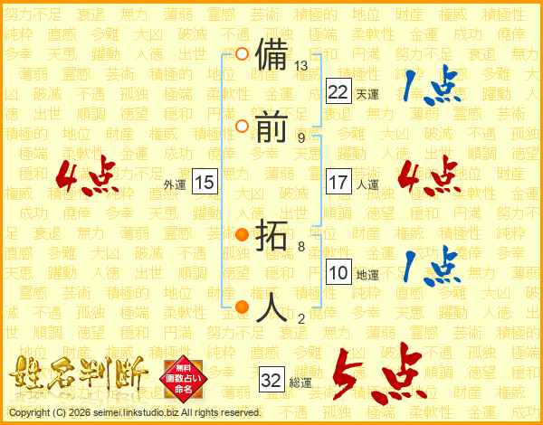 備前拓人さんの総運は32画の5点!