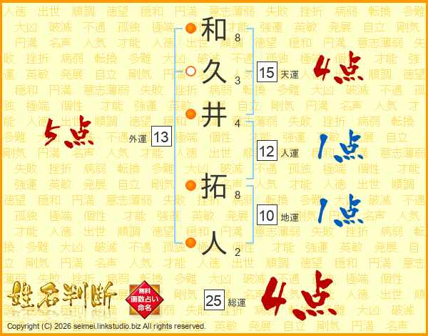 和久井拓人さんの総運は25画の4点!