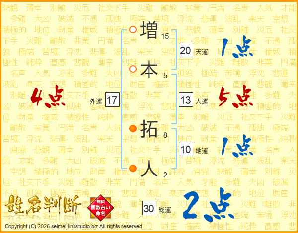 増本拓人さんの総運は30画の2点!
