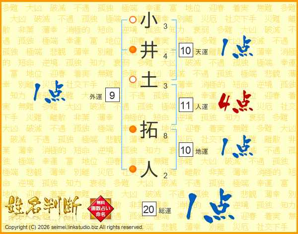 小(3画)井(4画)土(3画) 拓(8画)人(2画)
