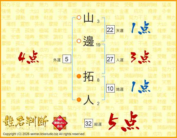 山邊拓人さんの総運は32画の5点!