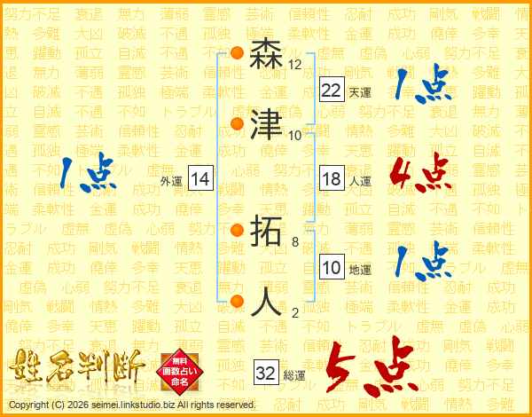 森津拓人さんの総運は32画の5点!