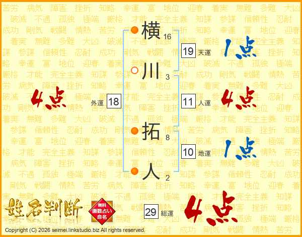 横川拓人さんの総運は29画の4点!