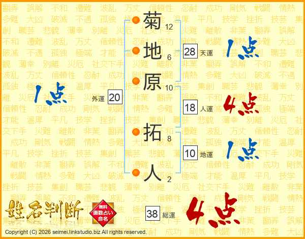 菊(12画)地(6画)原(10画) 拓(8画)人(2画)