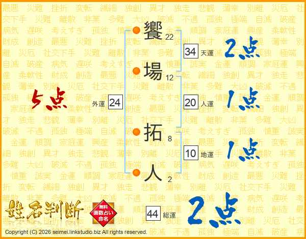 饗場拓人さんの総運は44画の2点!