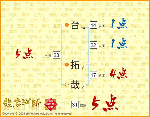 台拓哉さんの天運は14画の1点!