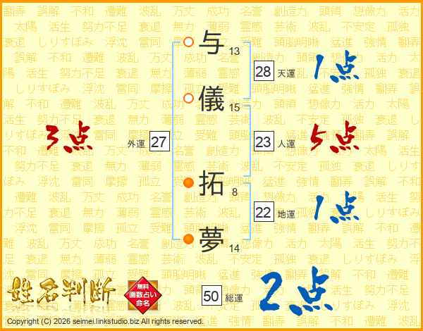 与儀拓夢さんの総運は50画の2点!